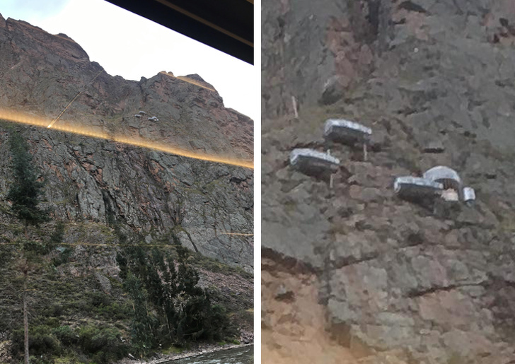 16. “Durante el viaje en tren a Machu Picchu, en una roca noté algunos edificios. ¿Qué es son?”