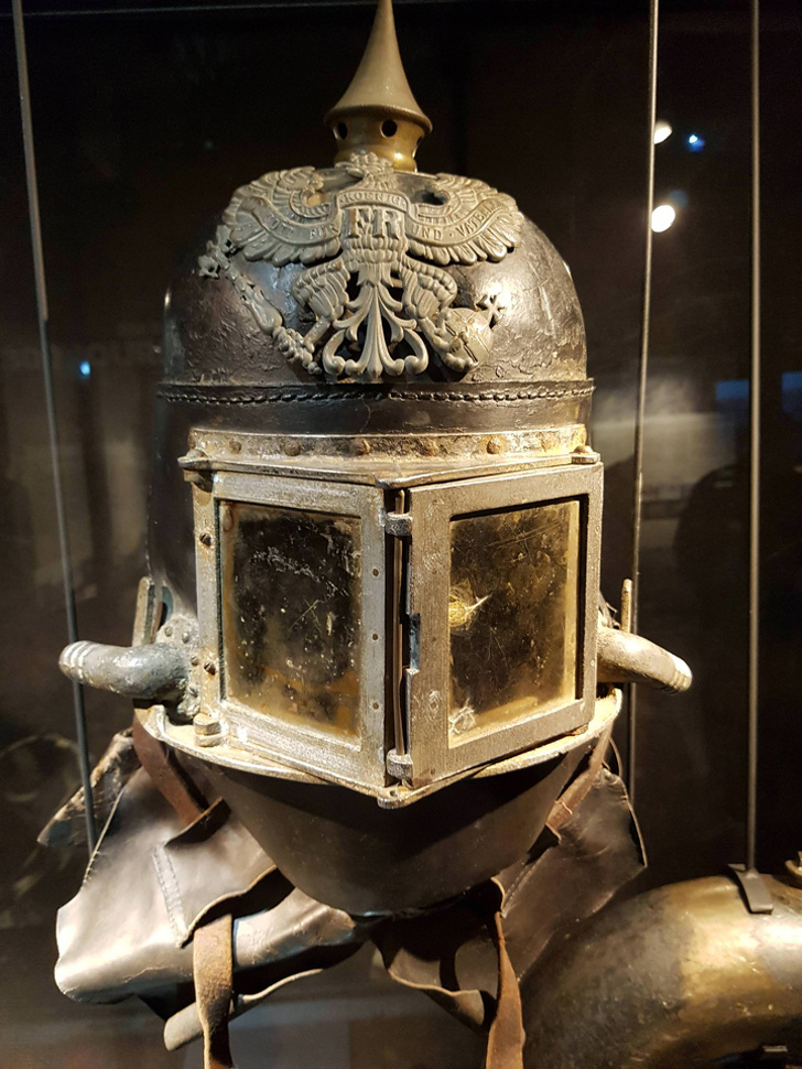 Tales cascos de protección fueron usados por soldados alemanes armados de lanzallamas.
