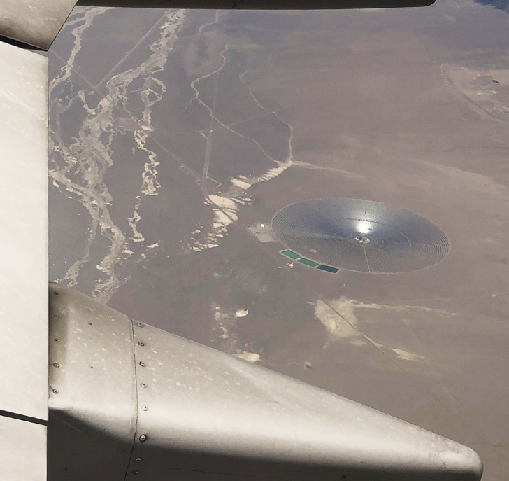 En la foto aparece una gran planta de energía solar-termodinámica de tipo torre, ubicada en el estado de Nevada, EE. UU.