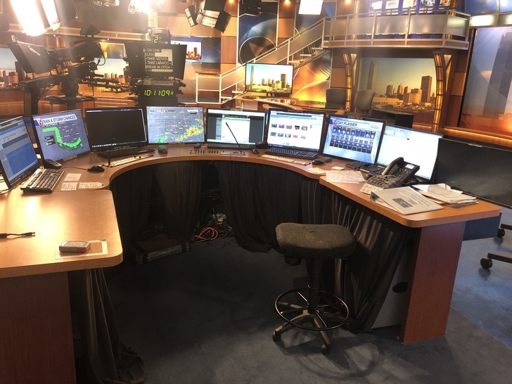 El lugar de trabajo de la persona responsable del pronóstico del tiempo en un canal de televisión