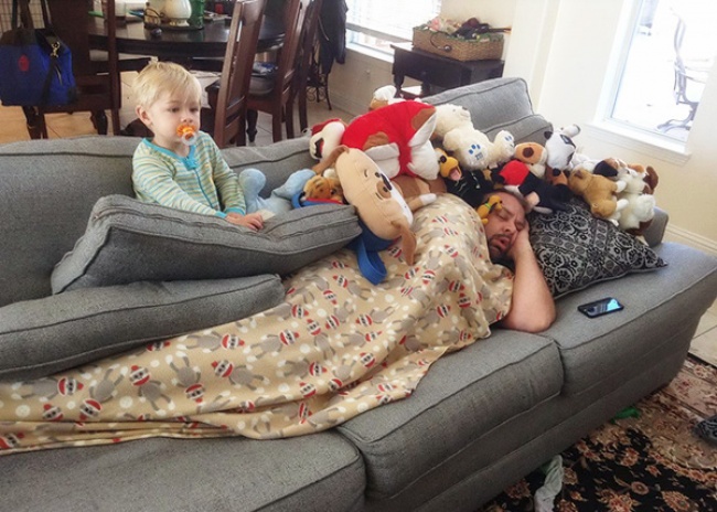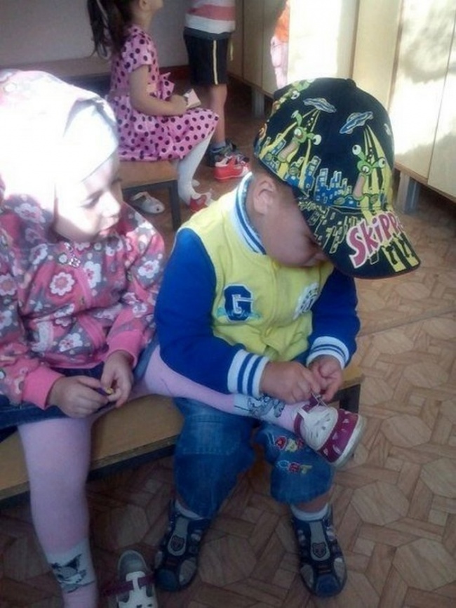 As crianças são como os gatos. Qualquer lugar parece ser confortável.