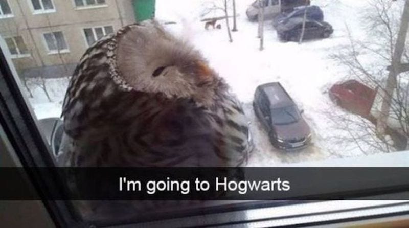 This lucky owl just got his Hogwarts letter. He’s going to be friends with a witch or wizard. He is very excited about it.