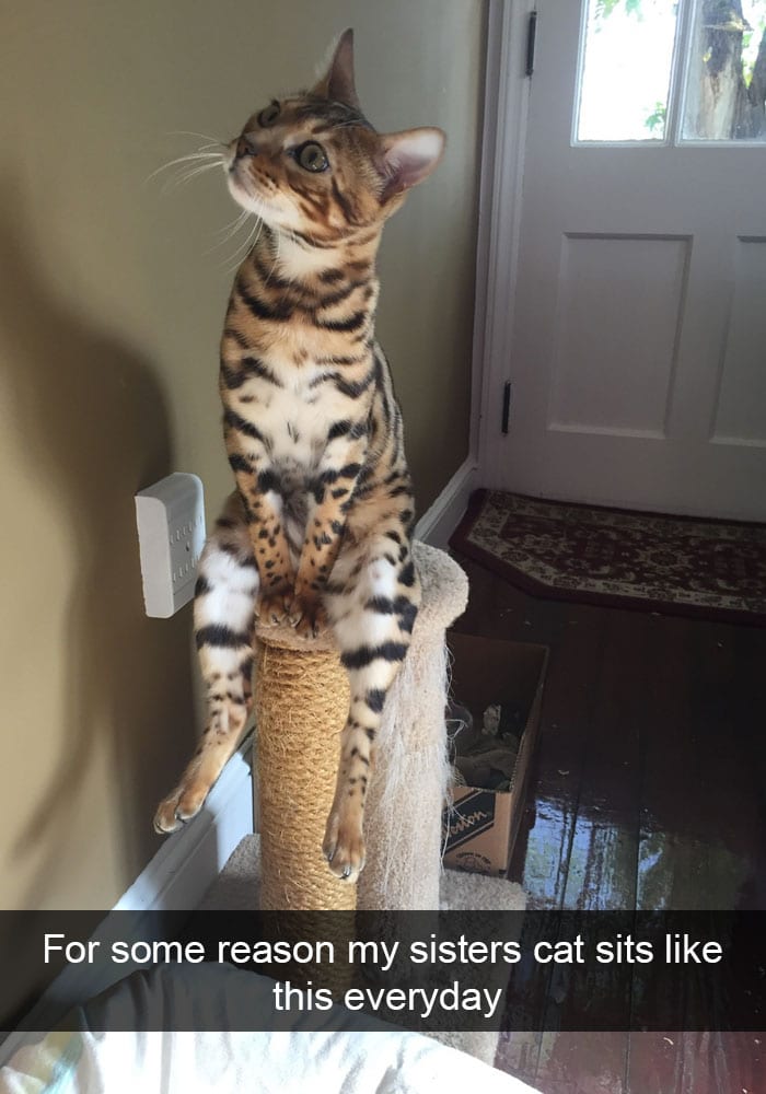 This is one laid back kitty. He’s mad chill. He’s just laid up on his post.