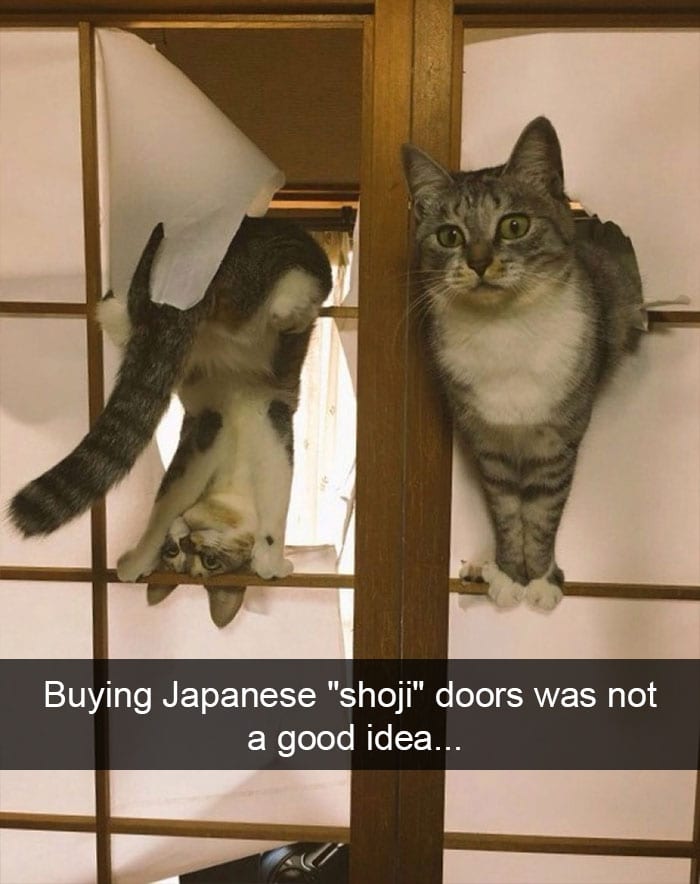 These kitties look they are having so much fun. At their owners expense. What were they thinking of when they bought these doors?!?