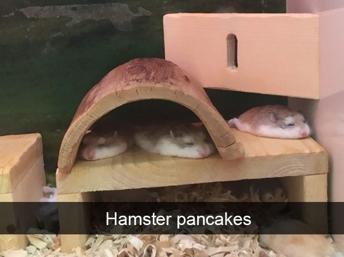 I didn’t know there was a flat variety of hamster. These hamsters are in full pancake mode. And they look so sweet.