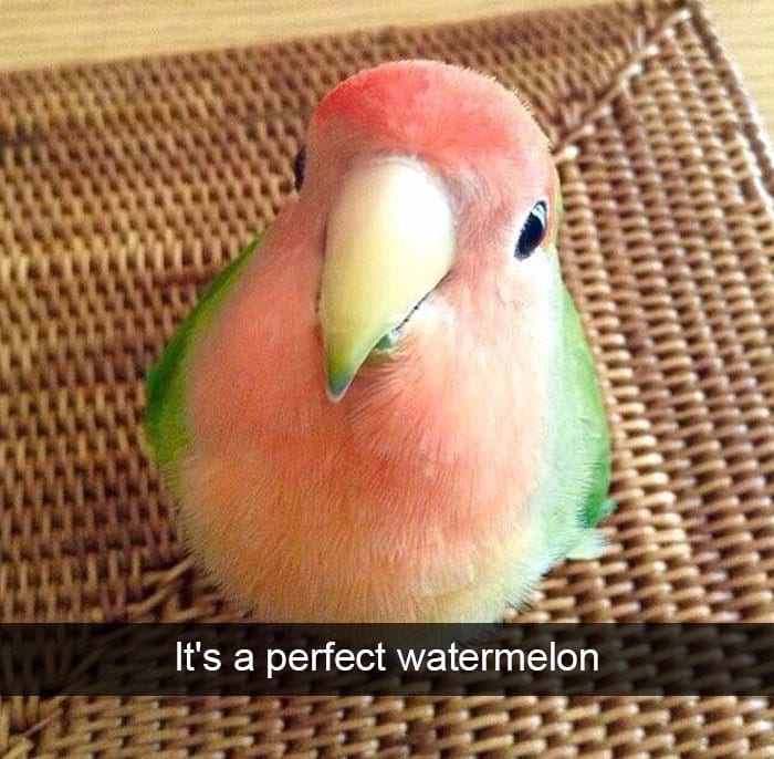 This bird perfectly looks like a piece of fruit. This little guy looks just like a watermelon. And he’s cute enough to eat.
