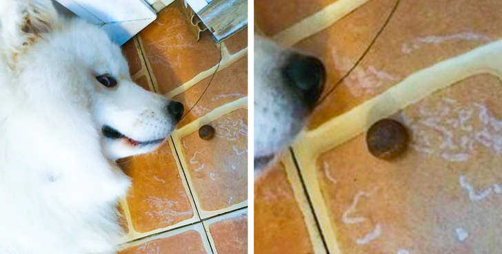 13. “Nuestro samoyedo arrastra un trozo de comida por la casa, lo pone junto a él y se duerme. A veces lo lame durante el sueño”