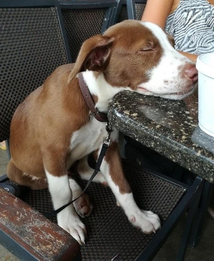 12. “Con mi novia sacamos a pasear por la ciudad a nuestro cachorro. Se quedó dormido justo en la mesa”