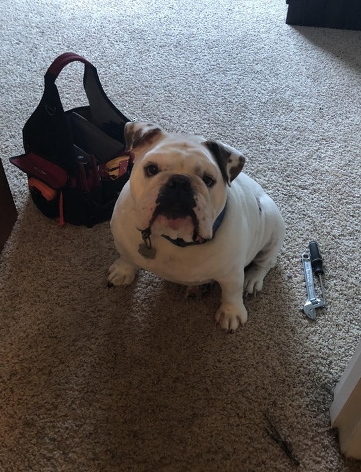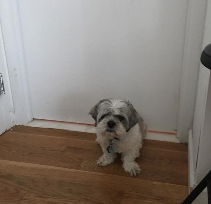 20. “Este perro se convierte en un guardaespaldas y se queda en la puerta de la ducha cuando mi novia va a bañarse”
