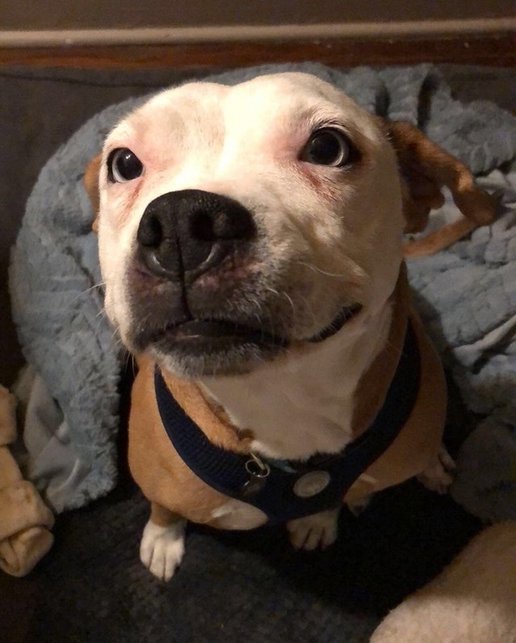 11. “Siempre me mira así cuando le digo: ‘Buenas noches’. Además, Rosie duerme con su hueso y lo trata como si fuera su cachorro”