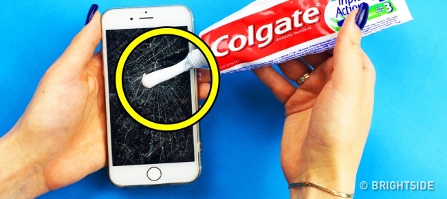 The screen of your smartphone can become scratched very quickly if you don’t cover it with protective film. Put a little toothpaste on a cloth, then carefully rub it on to any scratches. Remove any remaining toothpaste and wipe the screen dry.