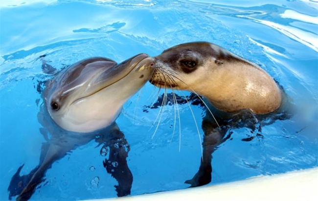 A dolphin named Jet and a seal named Miri from Australia have been real friends since childhood. For them, there’s nothing better than joint games. In the wild, they would probably compete for food.