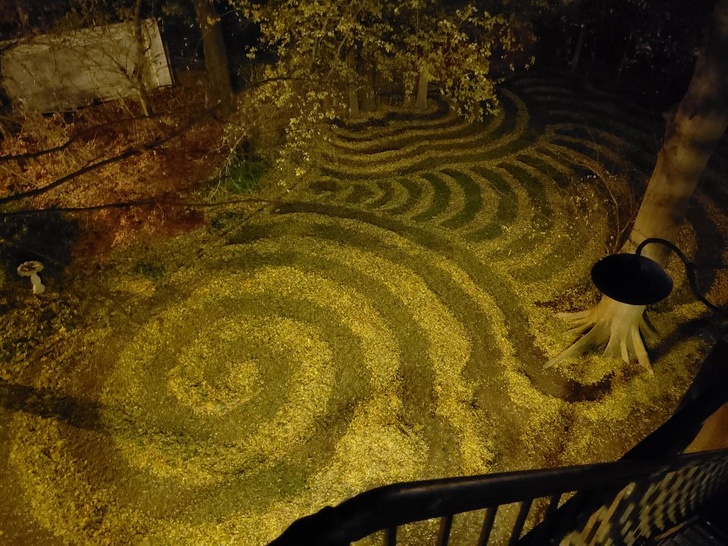 18. “Mi vecino creó un hermoso patrón de hojas”