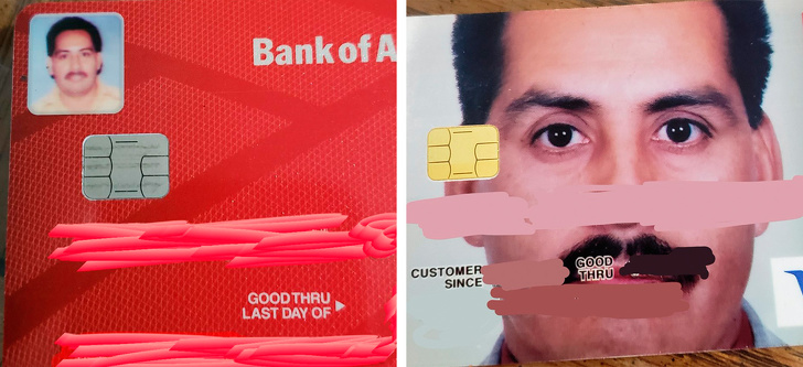 “Mi papá ordenó una nueva tarjeta de crédito con su foto. Pensó que sería una imagen pequeña, como en su tarjeta anterior. Eso fue lo que recibió hoy”