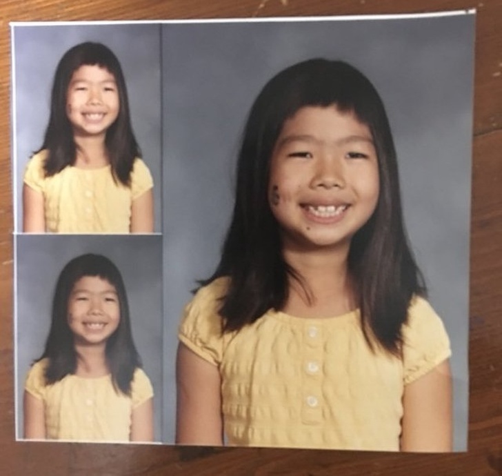 “Una vez, en mi infancia, en la víspera de la sesión de fotos para el álbum de graduación, decidí cortarme el flequillo y decorar mi cara con un tatuaje de calcomanía”
