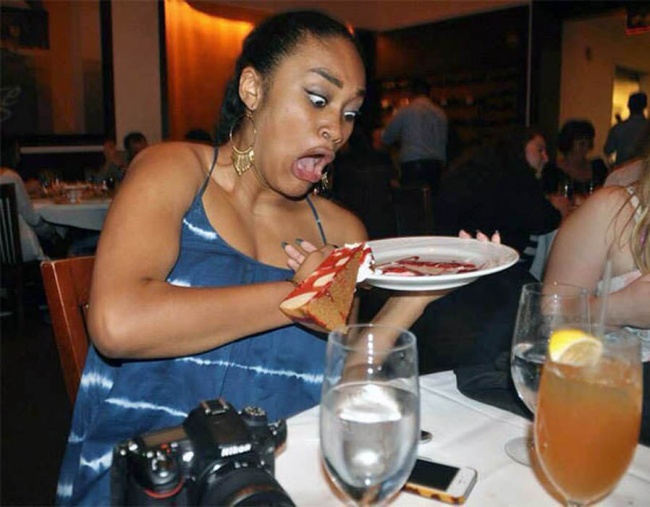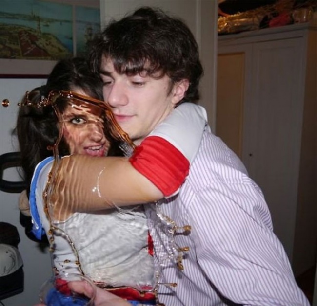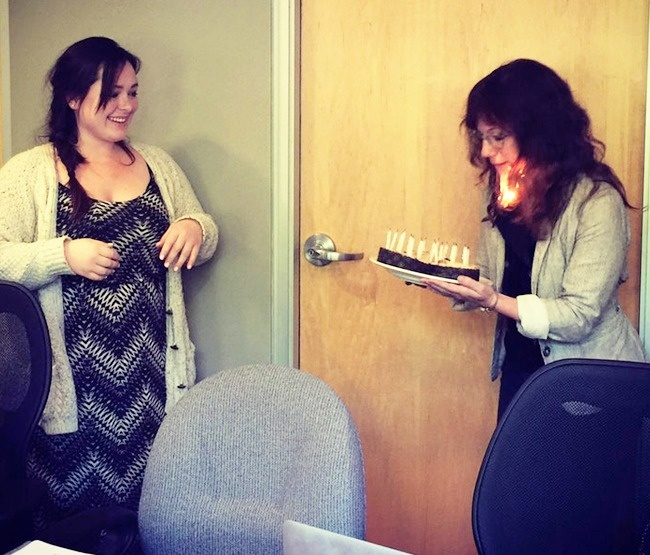“My friend set her hair on fire while blowing out the candles on her birthday cake. This was taken a split second before anybody realized.”