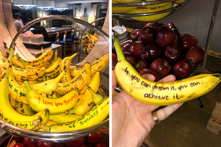 “This hotel writes inspirational quotes on their bananas and I’ve never felt so cared for by fruit in my life.”