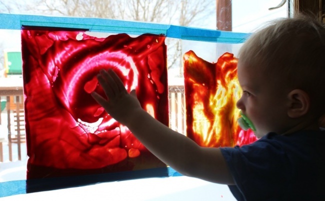 Coloque um pouco de tinta em um saquinho zip lock e deixe que seu filho ’desenhe’ com as mãos. Uma boa maneira de criar sem sujar.
