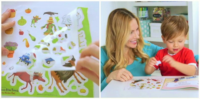 Retire o fundo da página com os adesivos para facilitar a vida do seu filho na hora de retirar os adesivos individualmente. Vão sobrar só os adesivos, e não o contorno.