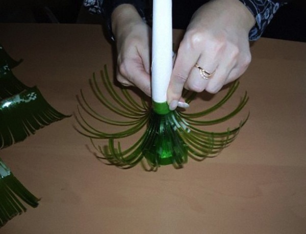 Make a lamp using plastic spoons
