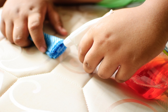 Misture água e vodka (uma medida de vodka por três de água) em um vaporizador. Direcione o vapor para o colchão. O álcool da vodka eliminará a maioria das bactérias.