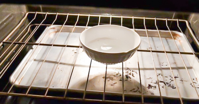 Corte um limão em duas partes e coloque-as num recipiente com água. Coloque no forno e ligue-o. Quando ferver, aguarde mais um minuto. A gordura e a sujeira vão sair muito mais fácil.