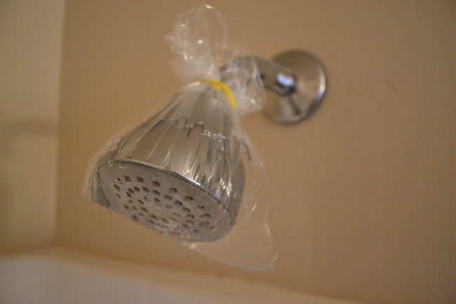Para limpar a cabeça da ducha, jogue vinagre branco num saquinho de plástico e, com a ajuda de um elástico, feche. Deixe a solução agir por uma noite. A sujeira desaparecerá, tanto do lado de dentro como do de fora.