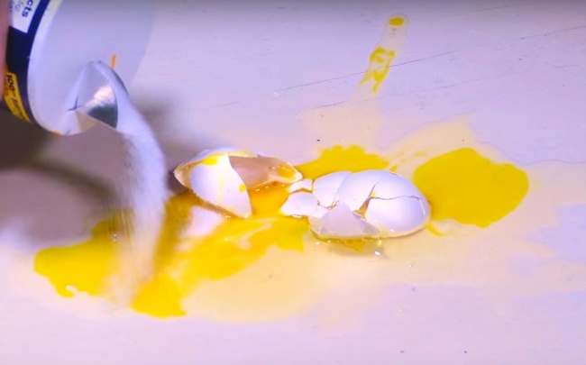 O mais fácil é jogar sal e deixar por 15 minutos. Em seguida, tire com papel toalha.