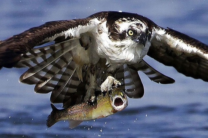 13. La mirada de sorpresa en la cara del pez cuando el águila lo saca del agua
