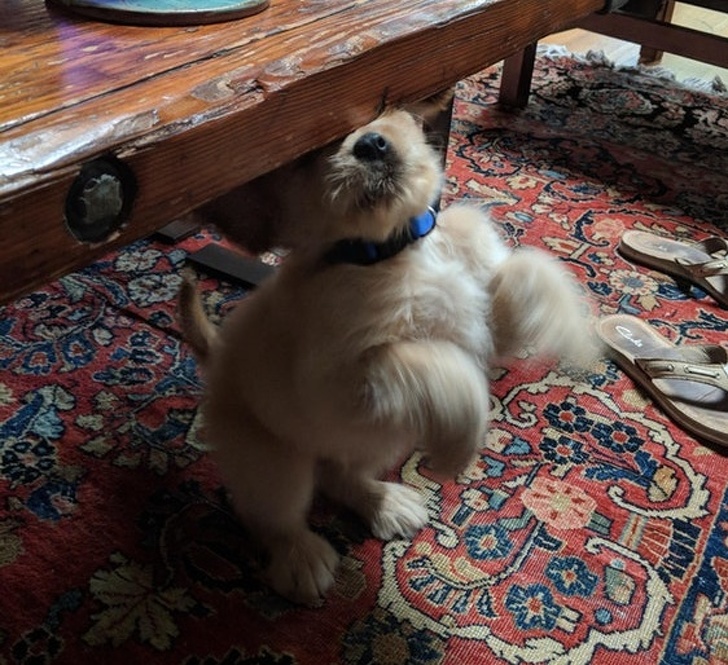 20. “El nuevo cachorro de mis padres calculó mal su salto”