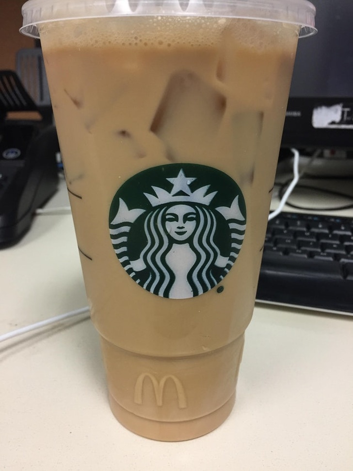 Estos vasos de Starbucks tienen el logo de McDonald’s en ellas