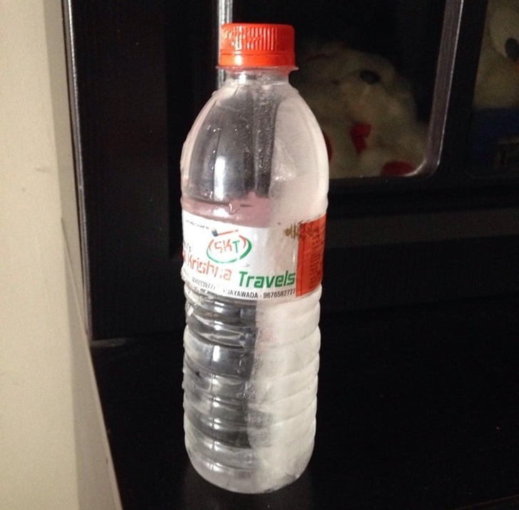 7. “To keep a water bottle cool for hours, fill 1/5 of a bottle and freeze it laying on its side. Then fill the bottle with water.”
