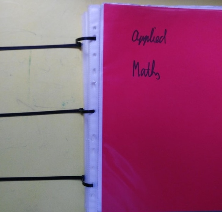 17. “If you don’t have a 3-ring binder handy, tie wraps are an excellent substitute.”