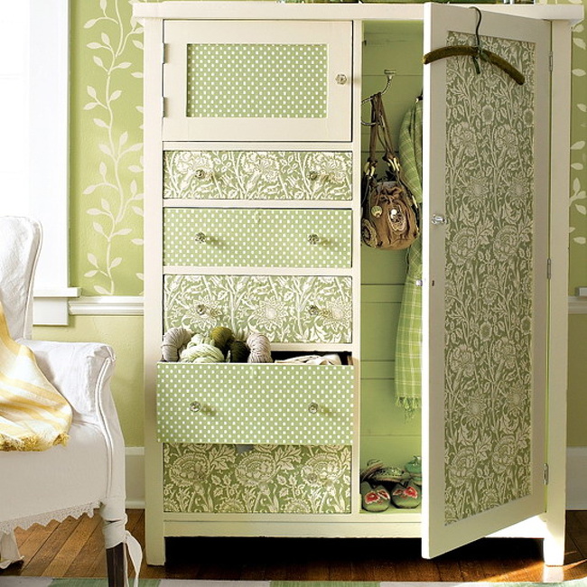 El papel tapiz no solo se puede pegar en las paredes, por ejemplo, también se puede colocar en el armario.