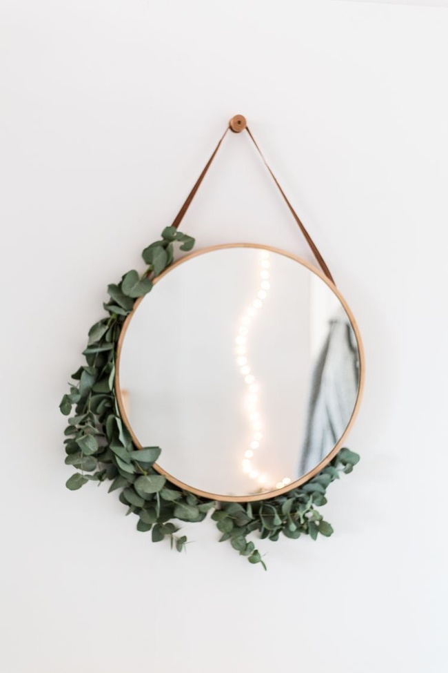 Parecería que simplemente se agregó una pequeña ramita con hojas a un espejo normal, pero qué hermoso quedó, ¿no?