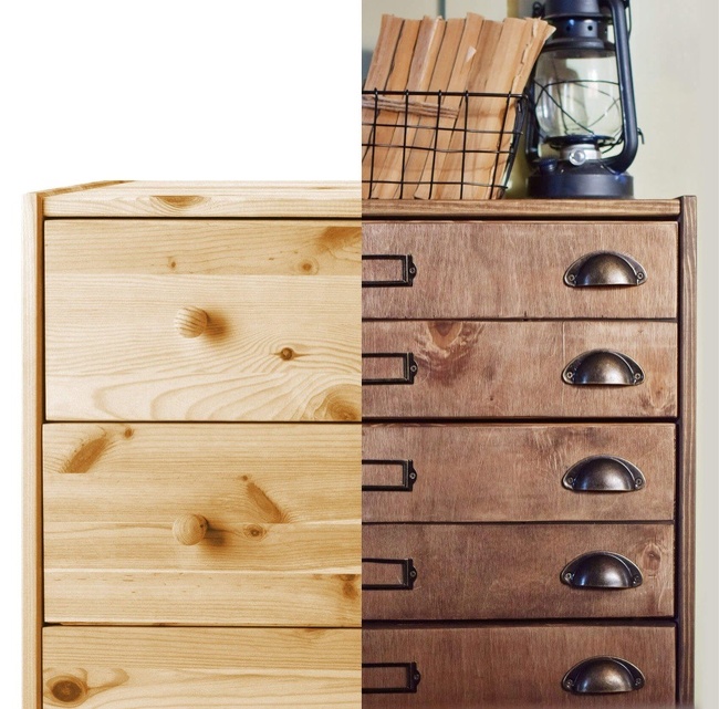 Parecería que solamente cambió el color y los accesorios, pero qué increíble se ve. Aquí puedes ver cómo hacer esta cómoda.