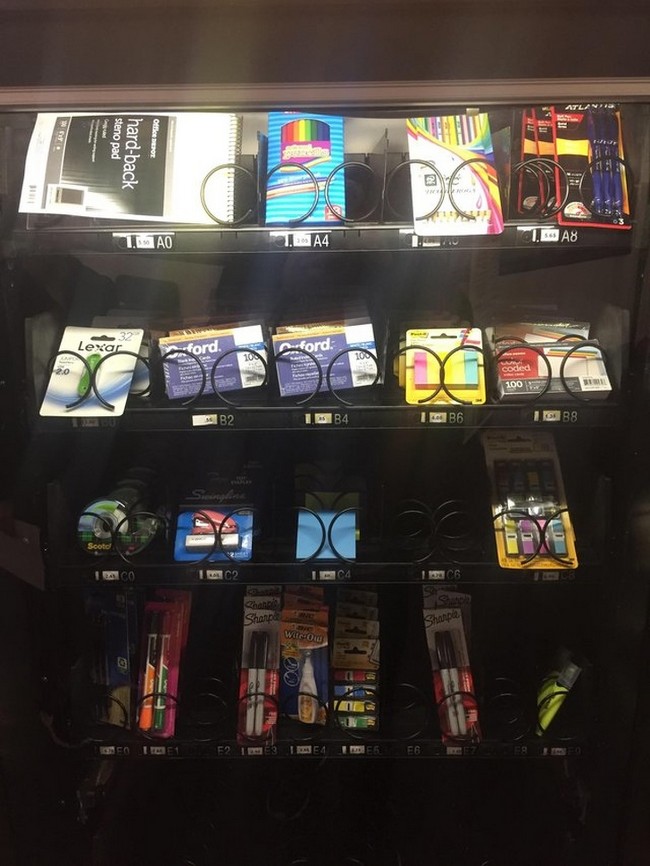 16 – A máquina de venda automática dessa minha escola tem materiais escolares em vez de refrigerantes e guloseimas