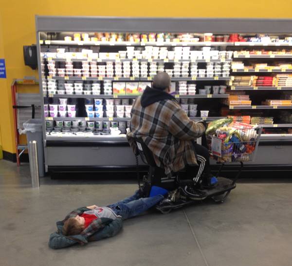 So, basically nobody uses their feet to walk around Walmart.