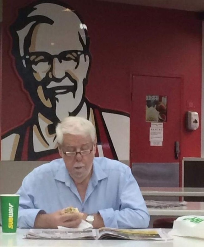 ¡El mismísimo coronel Sanders! Aunque… espera, creo que traicionó a KFC