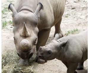 22. Este bebé rinoceronte está mirando a su mamá de una manera muy hermosa