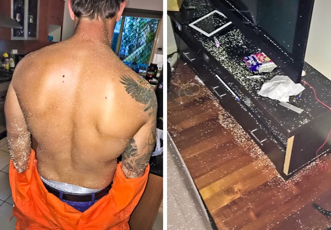 “En mi cuerpo y en toda la casa hay unas partículas pegajosas raras que son casi imposibles de lavar, y algunas solo se ven en las fotos con flash”