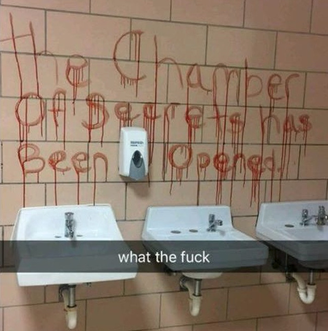 “Encontré esto en el baño de la escuela. Creo que tenemos a un descendiente de Slytherin por ahí”