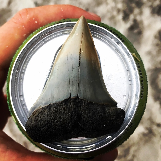 “¡El largo de un diente de tiburón que encontré no supera el de una lata de cerveza!”