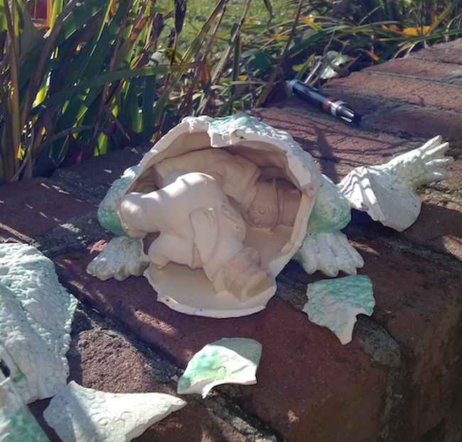 En el interior de una rana de jardín, encontré dos adornos de muñecos de nieve