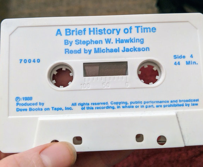 “‘Breve historia del tiempo’. Autor: Stephen Hawking. Leído por Michael Jackson”.