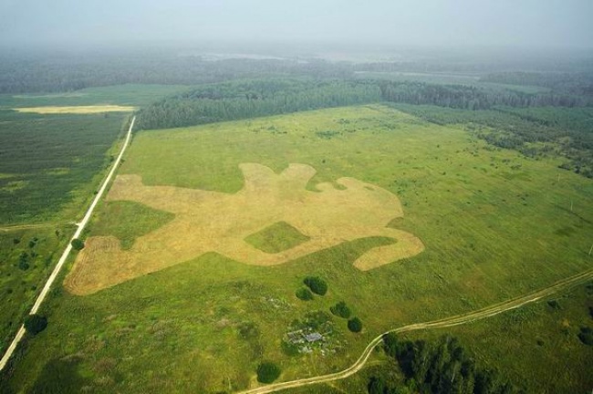 9. El logo de Peugeot fue “pisado” en un campo en Rusia