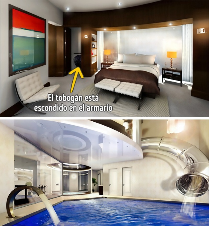 Tobogán de agua que te lleva justo a la piscina desde tu dormitorio