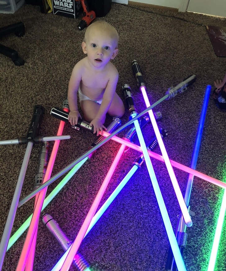 16. “Todas las mañanas, mi hijo saca mis sables de luz de la pared, y luego se queda mirando fascinado cuando los enciendo”
