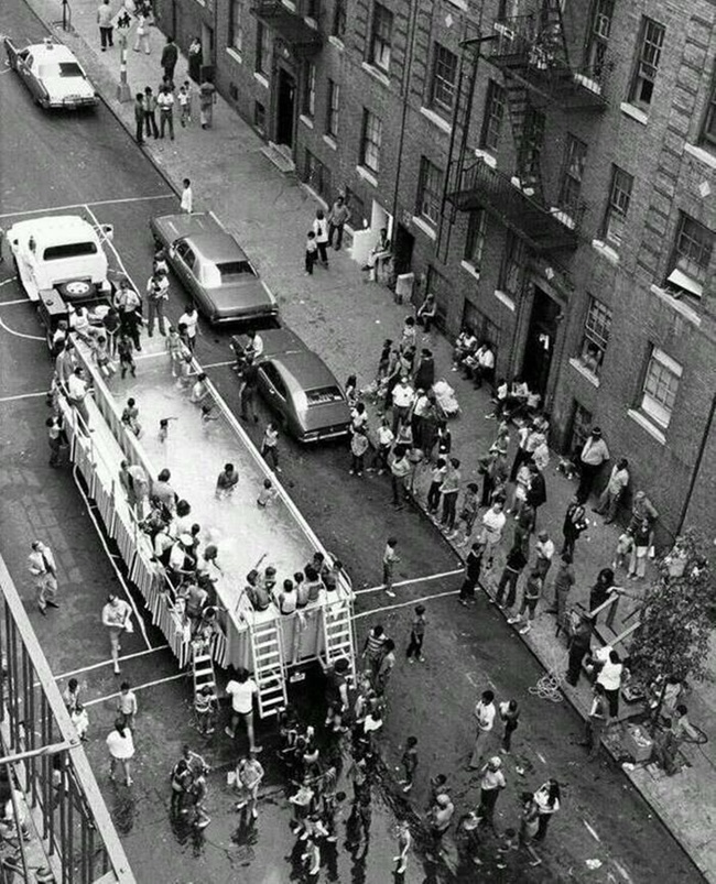 Una piscina móvil en la ciudad de Nueva York, 1960.
