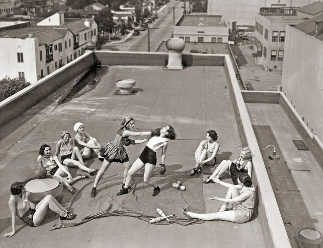 Boxeo femenino en el techo, año 1930.
